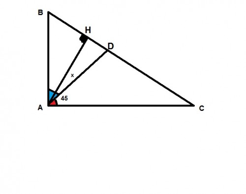 درمثلث ABC اگر زاویه Aمساوی90 درجه باشد وزاویه بین ارتفاع ونیمساز را xدرنظر بگیریم داریم $ \angle x+45+ \angle c=90 $ و در مثلث قائم الزاویهABH داریم$ \angle B+45- \angle x=90$اگردو طرف رابطه را مساوی قراردهیم داریم 2x=$ \angle B- \angle C $ در نتیجه چون تفاضل دوزاویه ممکن است منفی باشد مقدار