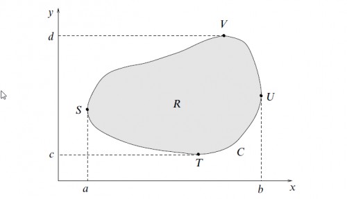 وقتی به این نقطه ای می رسیم: $ -\int_a^b P(x,y_{1}(x))dx -\int_b^a P(x,y_{2}(x))dx$ (با این فرض که منحنی موردبررسی را به دو قسمت بالا و پایین تقسیم کرده باشیم که معادله ی یکی y1 و دیگری y2 باشد، و همچنین a و b به ترتیب کمترین و بیشترین مقدار طول نقاط منحنی باشند.) آن را مساوی با $ -\oint_C Pdx $ درنظر می گیرند. سوال من این هست که آیا با توجه به وجود dx در انتگرال های بالا، این درست است که آن ها را انتگرال خط درنظر بگیریم؟ آیا انتگرال های معمولی نیستند؟ شاید من انتگرال خط را درست متوجه نشده ام، اما تا جایی که با آن آشنا شده ام در انتگرال خط معمولا جزء دیفرانسیلی را از منحنی ای می گیریم که روی آن حرکت می کنیم. یعنی ds. اما اینجا تنها dx حضور دارد، و نه مثلا جزئی دیفرانسیلی از مسیر STU و یا از مسیر SVU.