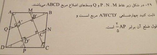 @ft1376 به عنوان راهنمایی سه گوشههای AA'Q و ADP و DD'P متشابه هستند. از این نکته درازا (طول) یال (ضلع) چهاریالی (چهرضلعی) کوچک خواسته شده بدست میآید (توجه کنید که برای سه یال دیگر باید سه گوش های نظیرش را بردارید که با سه گوش های معرفی شده مان هم متشابه هستند). فرض را بر این گذاشتم که قائمه بودن زاویه ها را از قبل میدانید چگونه ثابت میشوند به خاطر چیزهایی که با مداد به شکل اضافه کردید.