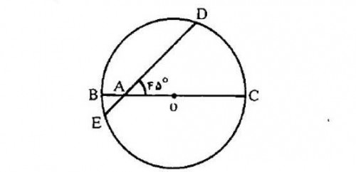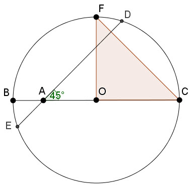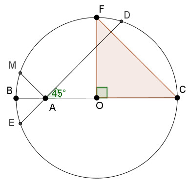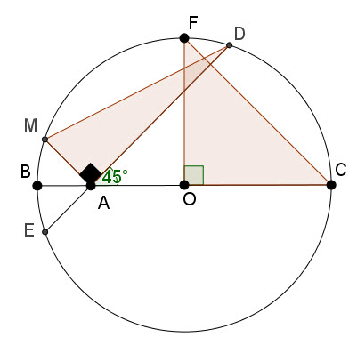 وتر $DAE$ از دایره $C(O,R)$ قطر $BC$ از این دایره را در نقطه $A$ به زاویه $45$ قطع می کند.