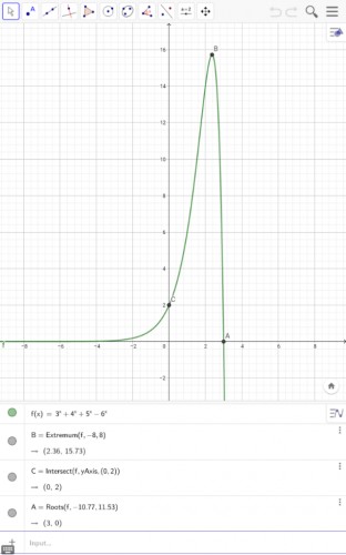 میدانیم که یک به توان هر عدد برابر یک میباشد. همچنین در طرف دیگر معادله جمع سه تابع به صورت تابع نمایی از نوع نزولی میباشد. پس با تشکیل دادن سه ناحیه معادله را بررسی میکنیم: