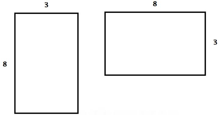در مستطیل به ابعاد 8 و 3 ، عرض 3 هستش و طول 8 . پس هر مستطیل به این ابعاد برابر یک مستطیل ه.